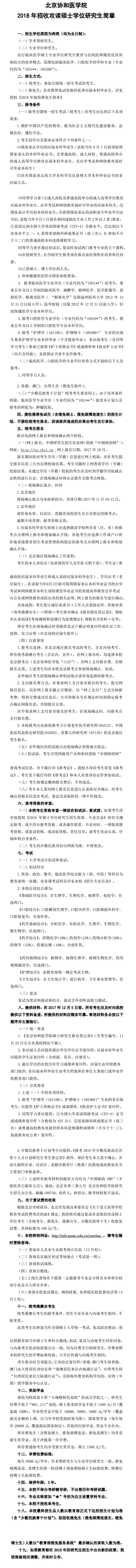 2018北京协和医学院招收攻读硕士学位研究生简章
