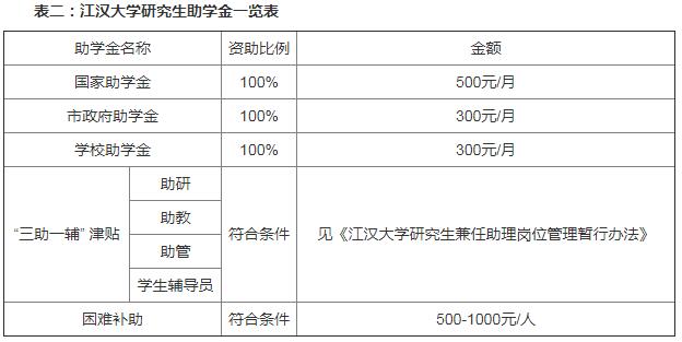 2.研究生奖助体系。学校设立的奖学金主要包括国家奖学金、学业奖学金、各类单项奖学金、企业奖学金和科研创新成果奖;助学金主要包括国家助学金、市政府助学金、学校助学金、“三助一辅”岗位津贴、特殊困难补助等;此外鼓励企事业单位来校设立研究生专项奖学金,如武商励志奖学金、武汉市供销社设立的“九源励才奖学金”、“昱申翔奖学金”等。