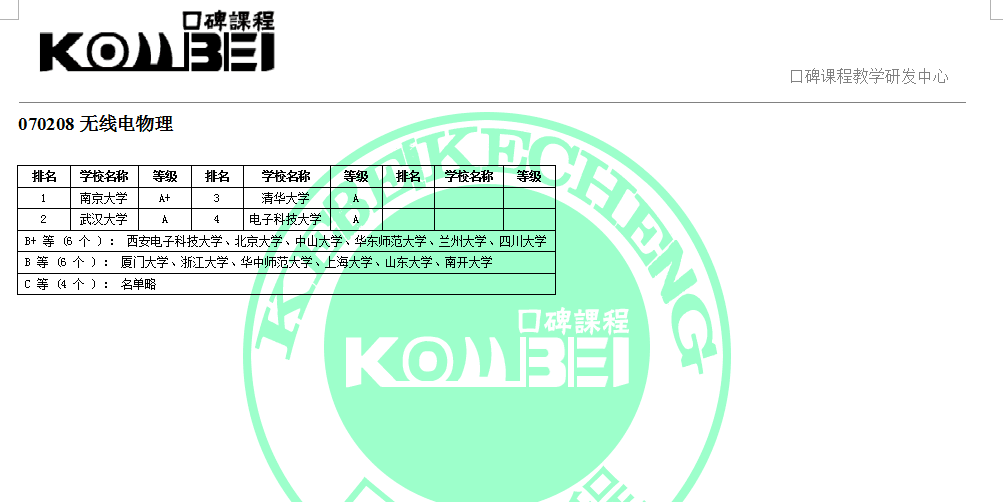 | 二级学科代码:070208 | 二级学科名称:无线电物理 |